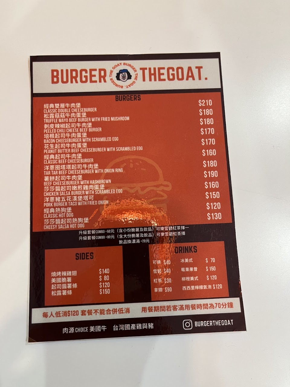 2024最新在地推薦餐廳的菜單_BURGER THE GOAT 最棒慢餐店-無訂位服務的菜單、圖片