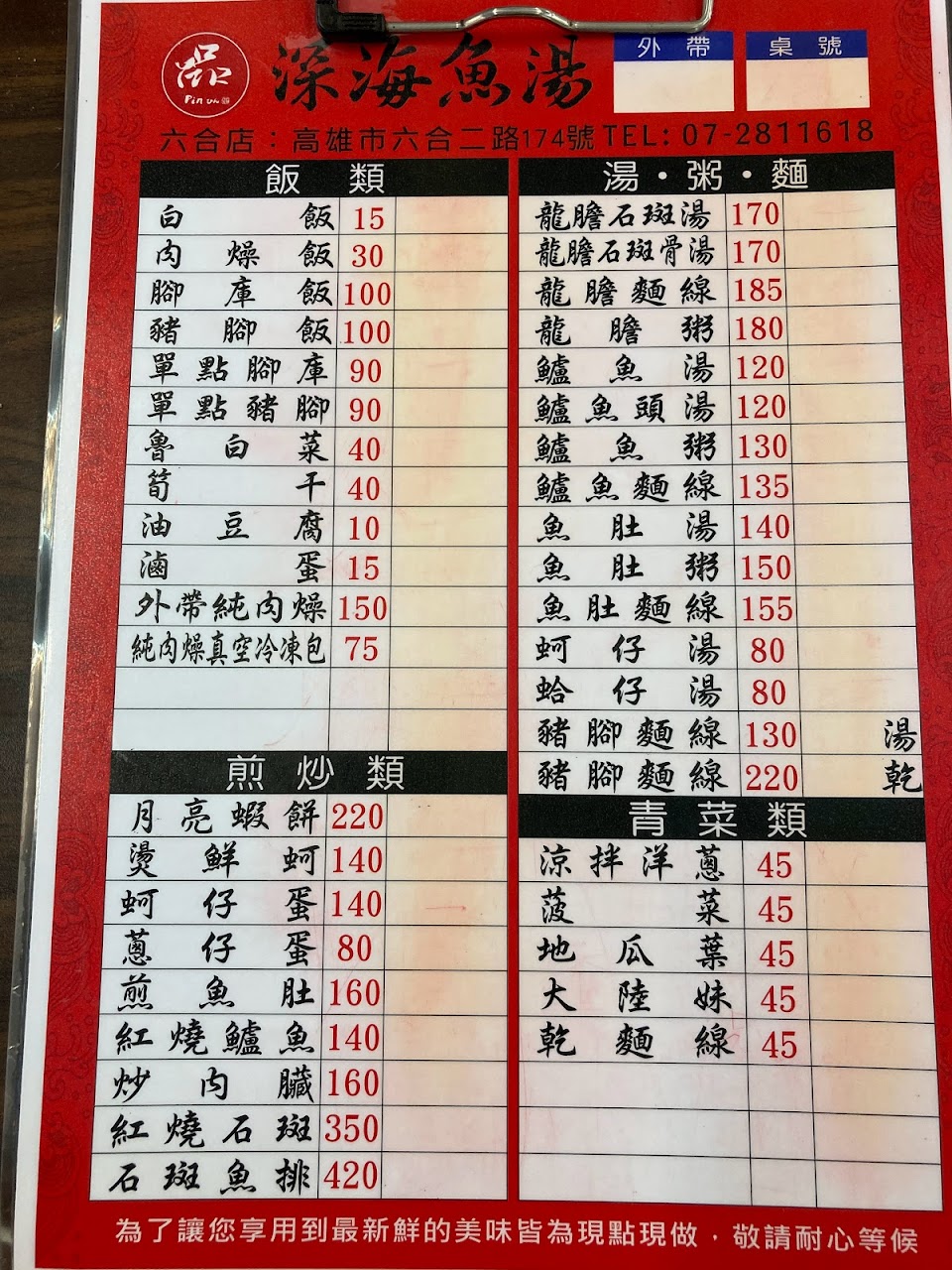 從湯到菜或飯都比一般賣魚湯的貴5到20不等
