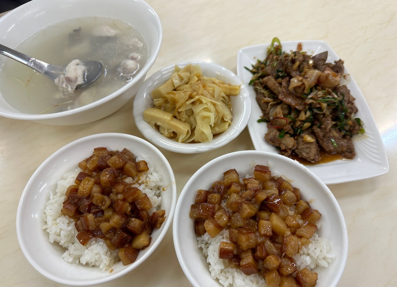 可以理解為什麼那麼多評論都說肉臊飯沒有味道,因為肉臊飯不鹹偏甜,但又不夠甜,整碗只有本身肉臊的油香在撐場,導致肉臊飯變得非常膩口,如果不是一口飯一口湯,我根本吃不完。