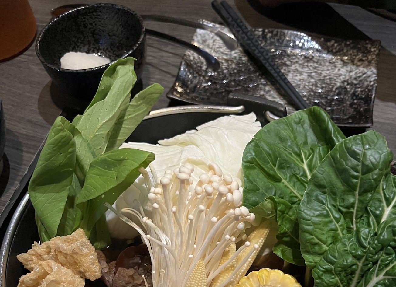 當我在抱怨我朋友都把金針菇吃掉時下一秒店員就貼心的在送上金針菇