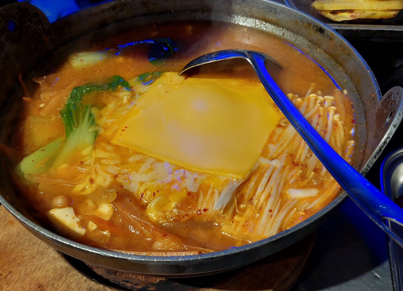 服務人員很熱情的幫忙烤肉跟蔬菜,第一次肉烤的有點乾,第二次後的有帶汁跟香氣。 南瓜很香甜。點了雙人套餐跟部隊鍋。 如果胃口不大的不建議這樣點,會剩蠻多的。 服務 內用 餐點類型 晚餐 平均每人消費金額 $400-600 餐點:4 服務:5 氣氛:4 建議的餐點 烤肉