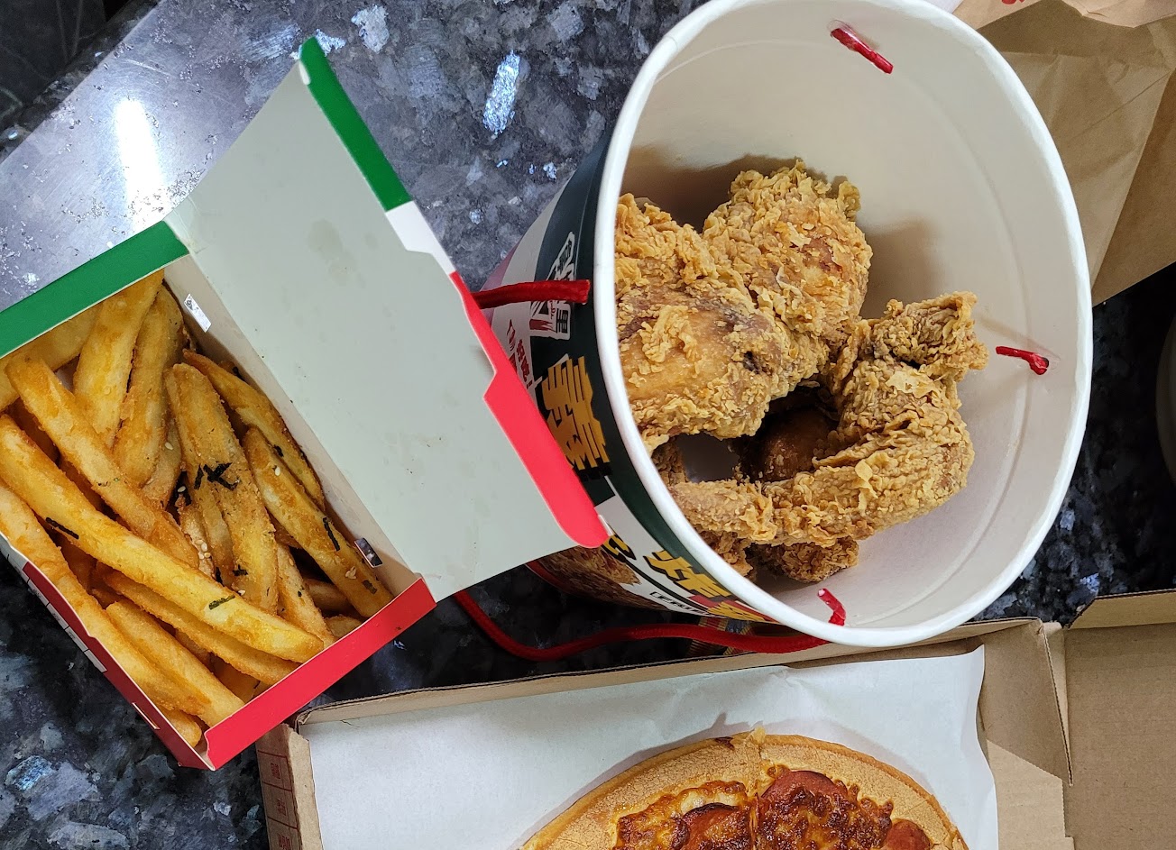 炸雞才是本體⋯不過pizza點了總匯,算不錯