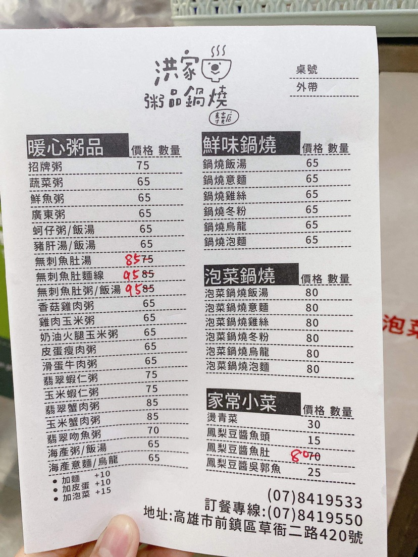 2024最新在地推薦餐廳的菜單_洪家粥品鍋燒麵專賣店 草衙在地店家的菜單、圖片