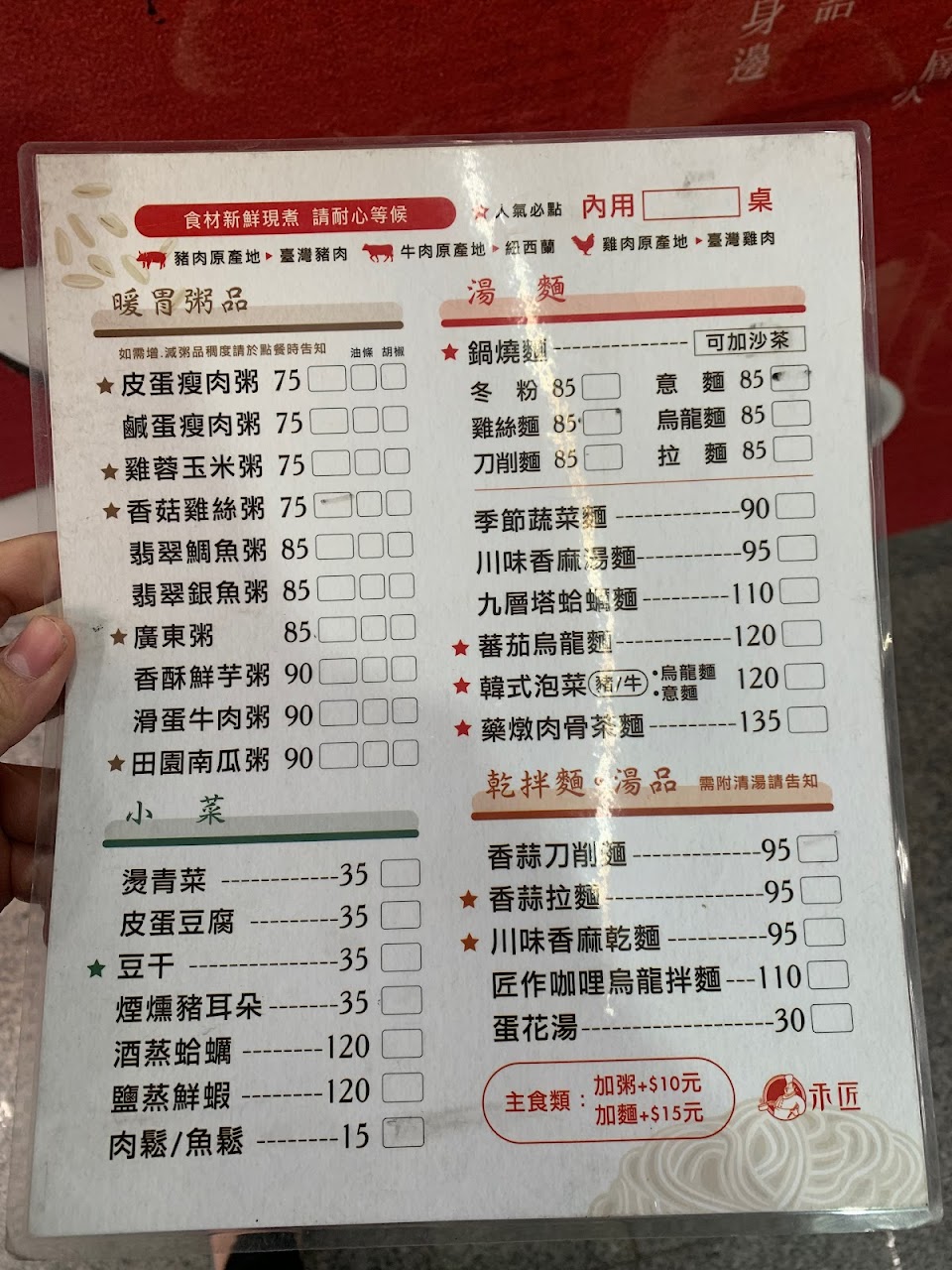 2024最新在地推薦餐廳的菜單_禾匠粥品麵食草衙店的菜單、圖片