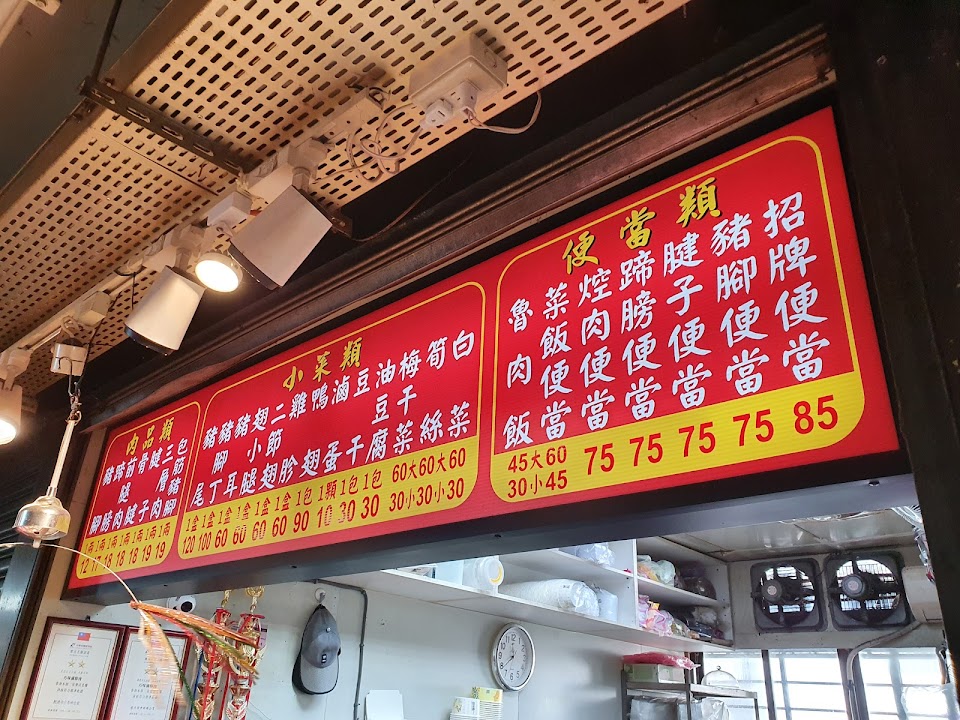 豬腳燉煮入味軟嫩,鹹甜口感的滷汁很下飯。招牌飯搭配去骨豬腳;蹄膀;腱子肉搭配魯肉飯,外加3種配菜。不同部位的咬勁口感味道,不輸其他名店。另有單獨販售豬腳相關部位,還有魯油豆腐;豆乾;魯蛋還有白菜魯和筍絲等小菜。生意很好經常在中午未到時,部份品項就會售完。個人認為整體味道較為單調,另外要是能在香味再下功夫,會更加完美。