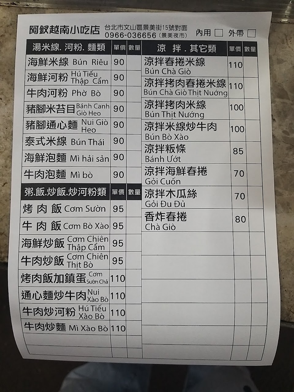 這家不是河內越南小吃,是阿妹越南小吃店唷。服務態度好,餐點量比較多。 服務 外帶 餐點類型 晚餐 平均每人消費金額 $1-200 餐點:5 服務:5 氣氛:5