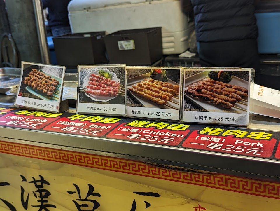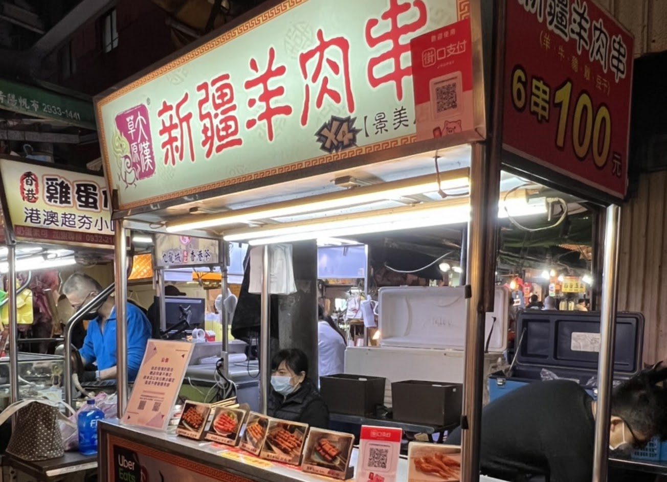 每次來景美夜市,必買孜然羊肉串,七串一百元。雖然小塊了點,但好吃!