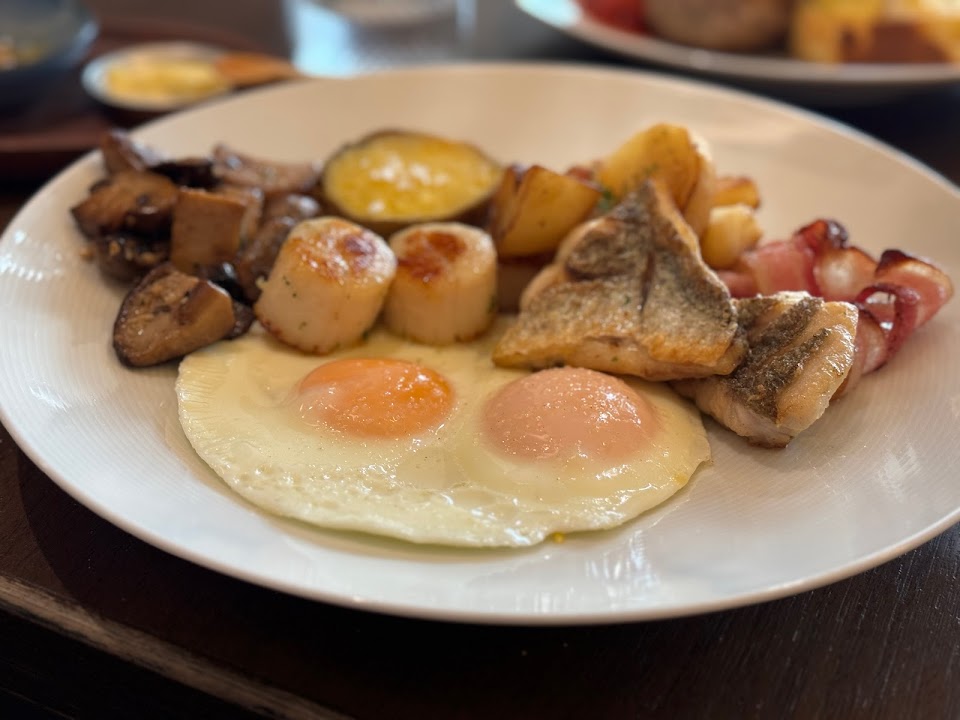煙燻鮭魚歐姆蛋搭配香蒜麵包