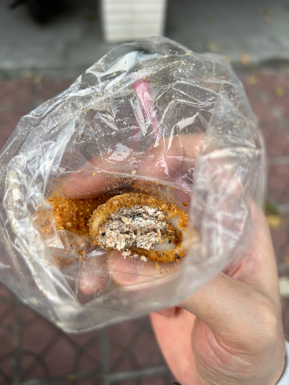 口味來說好吃,然後是甜食,內餡是春捲會用的花生糖粉~看個人接受度囉~