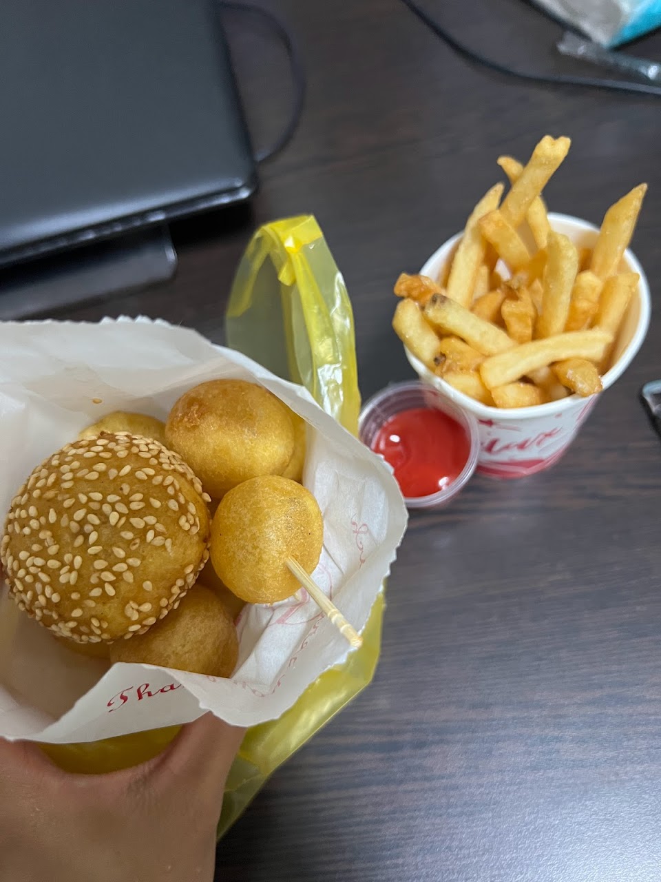 今天拿到的薯條都斷掉的,就是冷凍薯條弄熟,在家可以自己做可能還比較脆..番茄醬應該是稀釋過的…