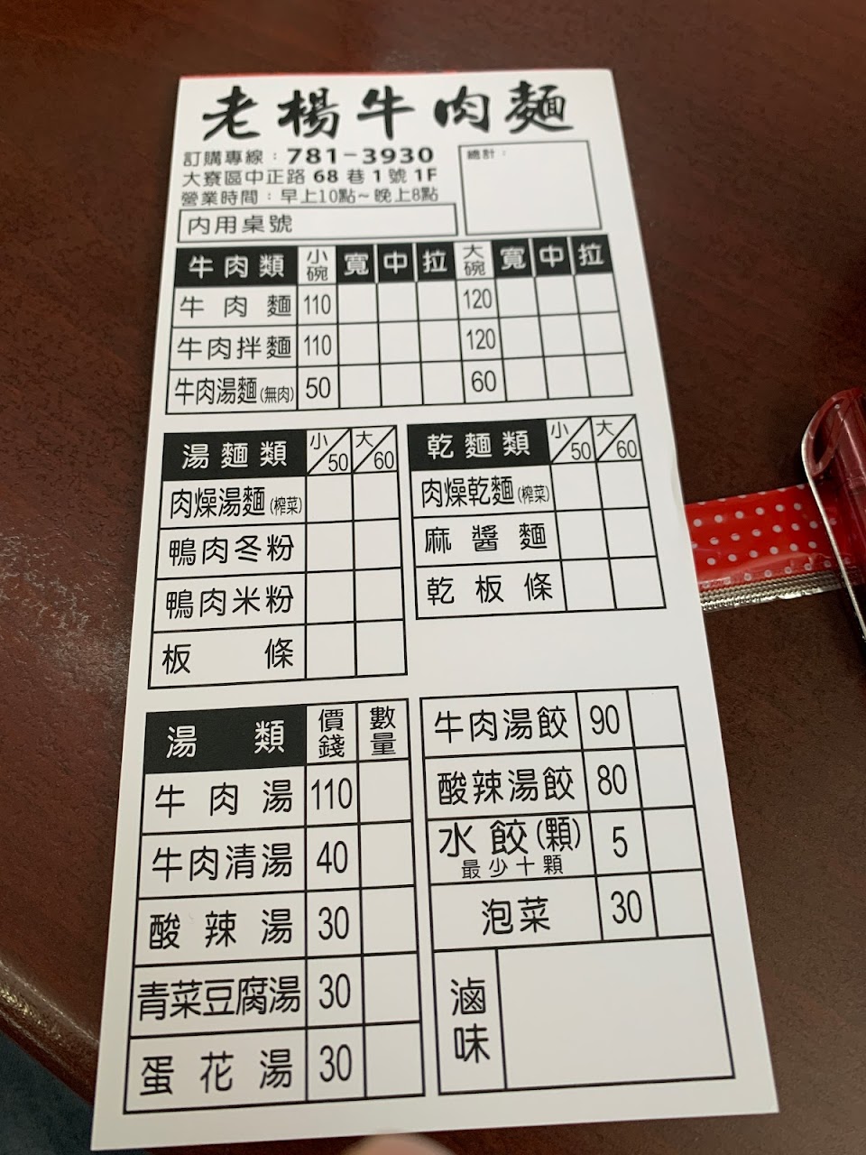 2024最新在地推薦餐廳的菜單_老楊牛肉麵的菜單、圖片
