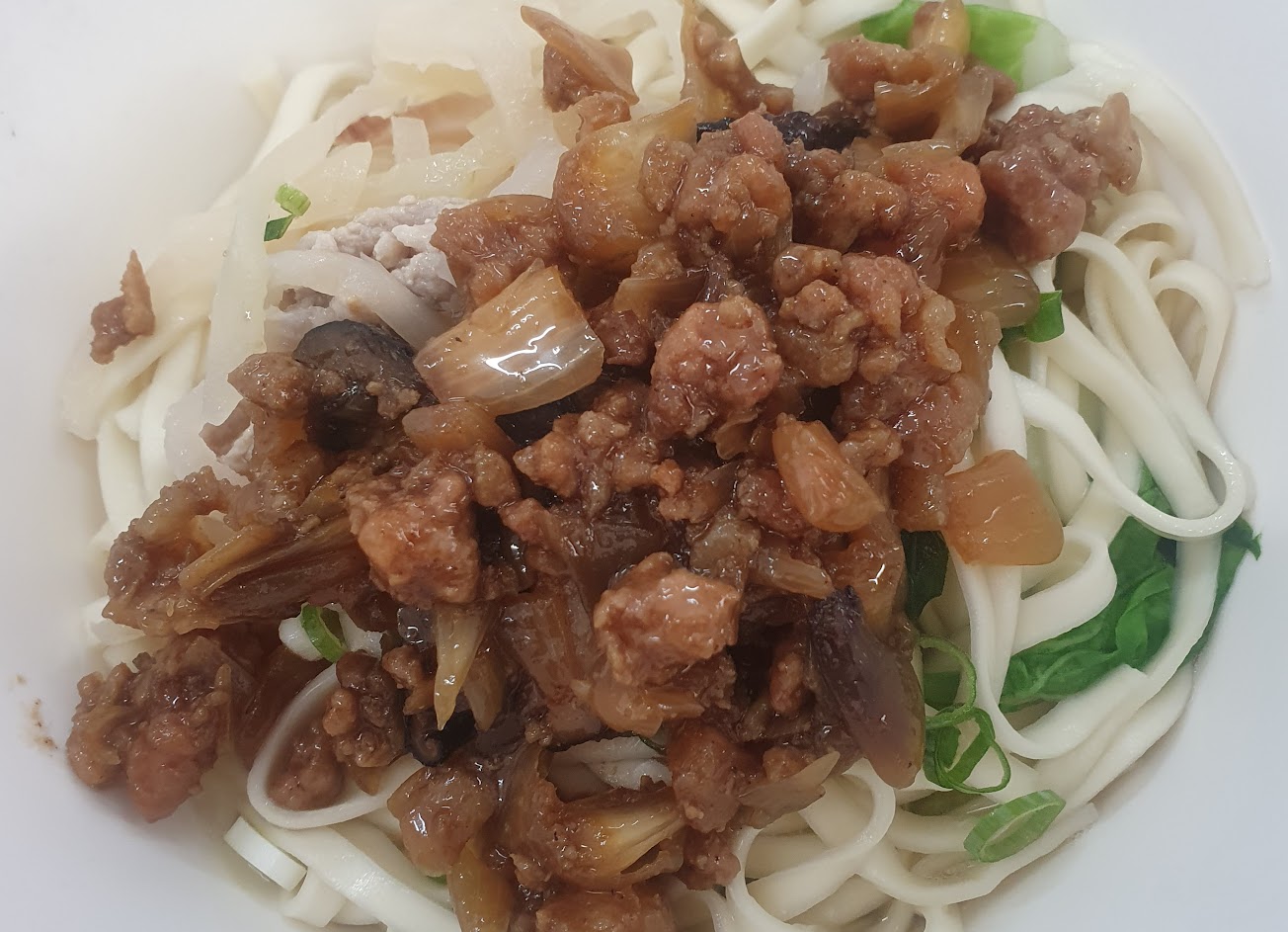 米苔目(小)$40(也是偏Q彈的麵,完全不會軟爛,加了肉燥和類似菜頭絲還是油蔥等?湯頭稍微油膩一些!)