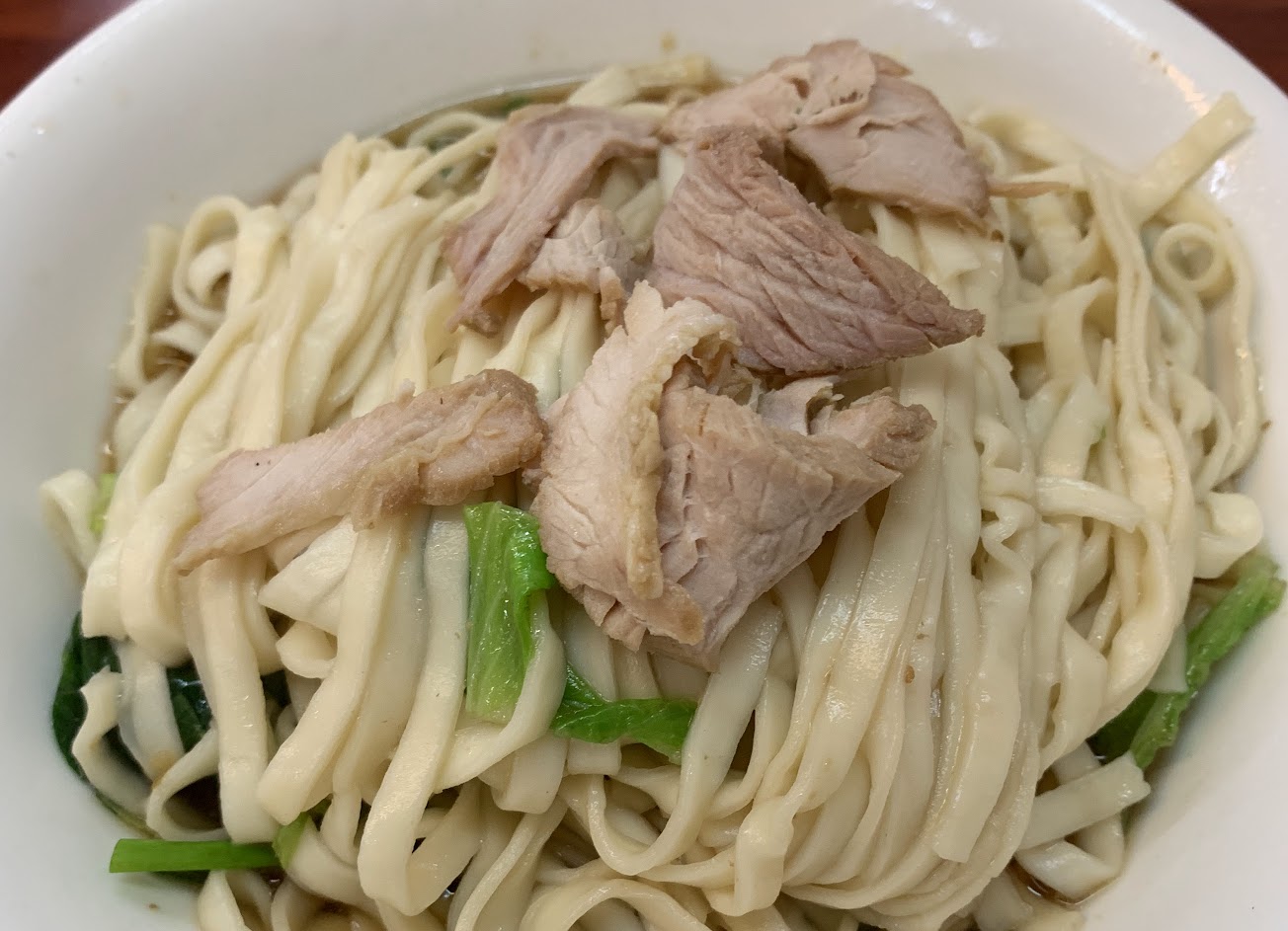第一次吃就愛上~~看著餛飩麵的價格不高(大碗60元、小碗50元),所以索性點了大碗。結果端來完全出乎意料的大碗,甚至害怕自己吃不完~~(雖然最後還是自己把它殺完了哈) 口味也不錯,餛飩的甜味有出來,唯獨湯頭的部分稍嫌清淡。應該不是我重口味…也不知道是不是忘了加什麼之類的,平常飲食健康的我還真的第一次在外面吃到我覺得口味淡的食物…我是還勉強可以接受啦,只是大眾來說就不一定了。