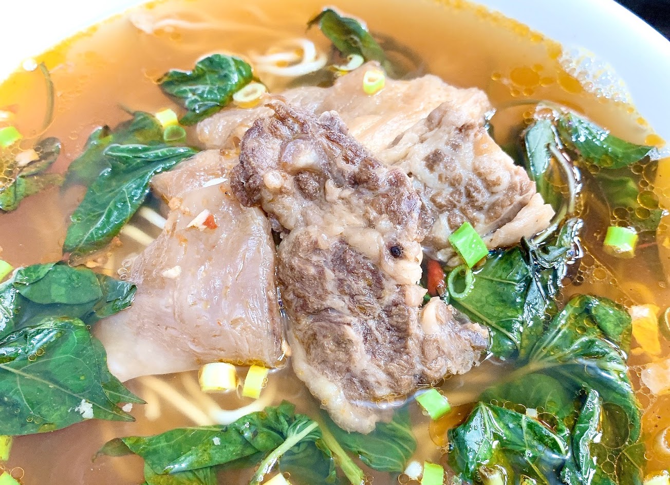 紅燒湯底微辣,餘韻偏甘甜很順口不死鹹,會忍不住把湯頭喝完。