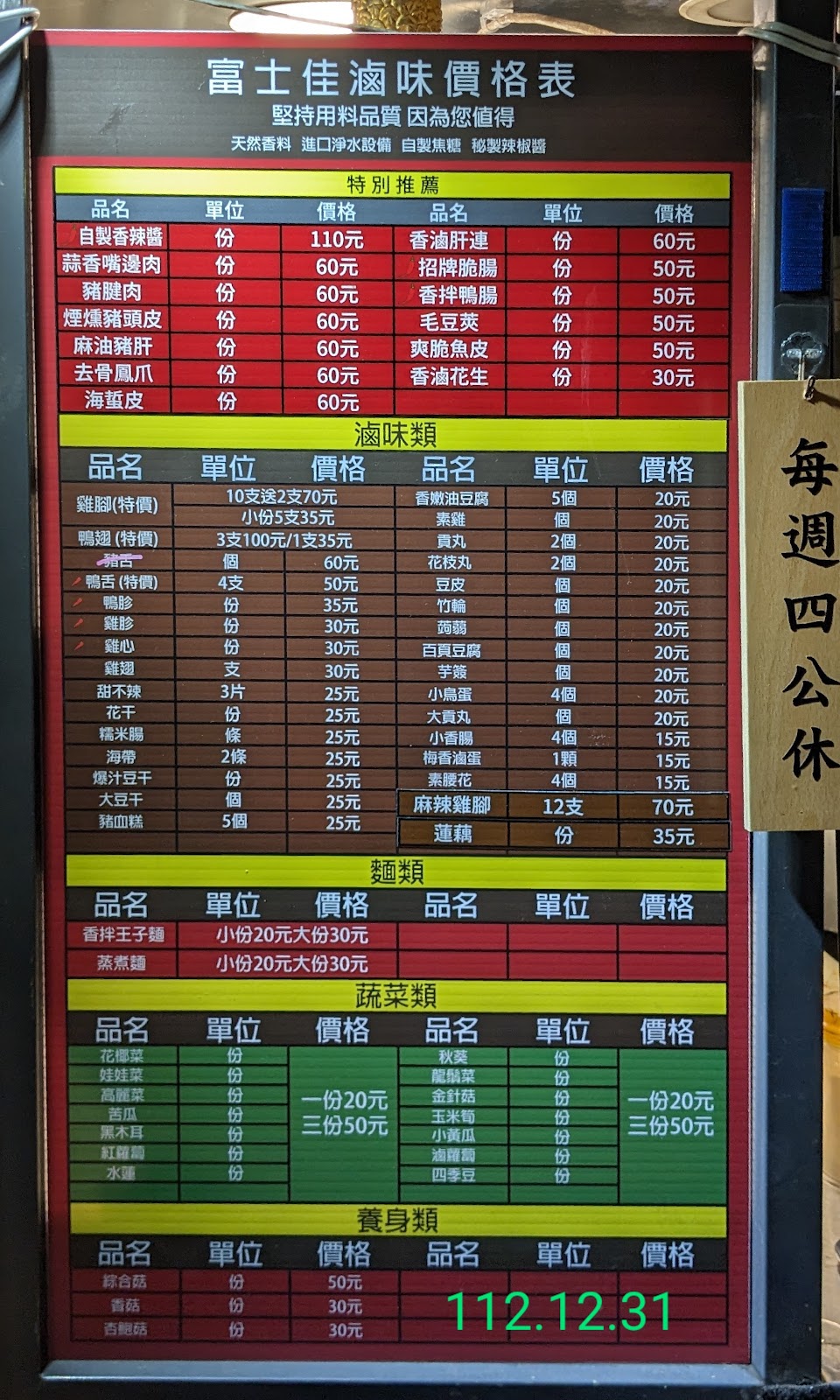 2024最新在地推薦餐廳的菜單_富士佳滷味 (台北景美店)的菜單、圖片