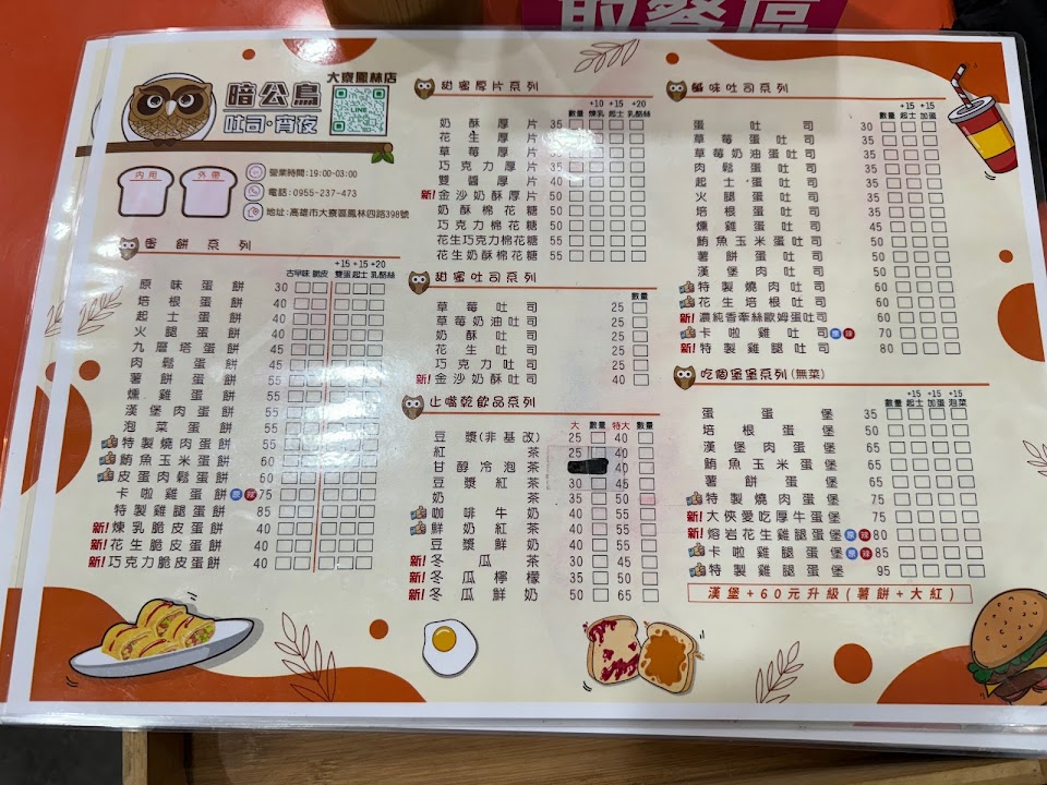 2024最新在地推薦餐廳的菜單_暗公鳥吐司、宵夜大寮店的菜單、圖片