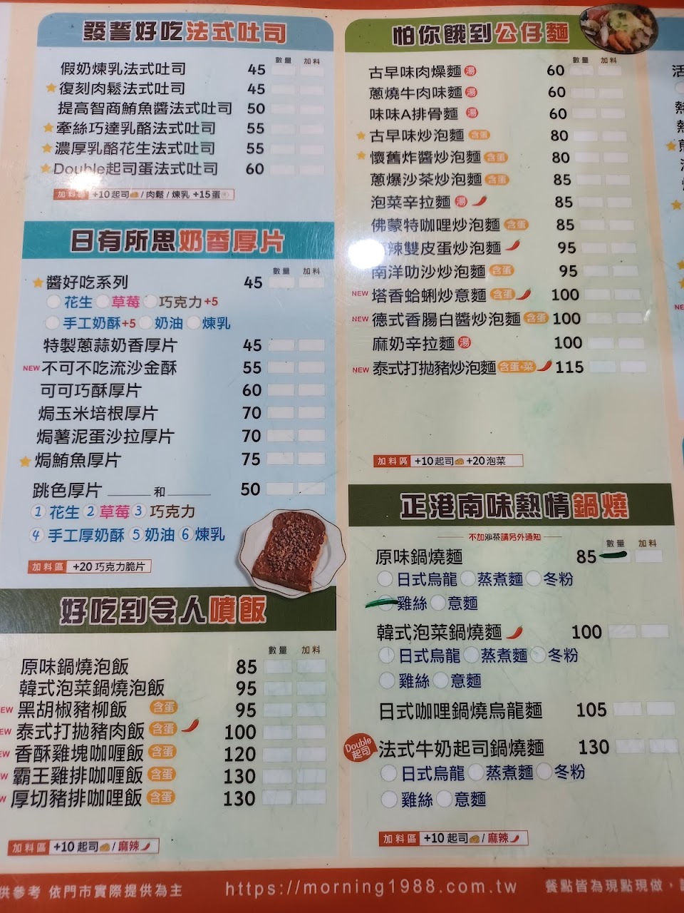 點了厚片、蛋餅、炒泡麵