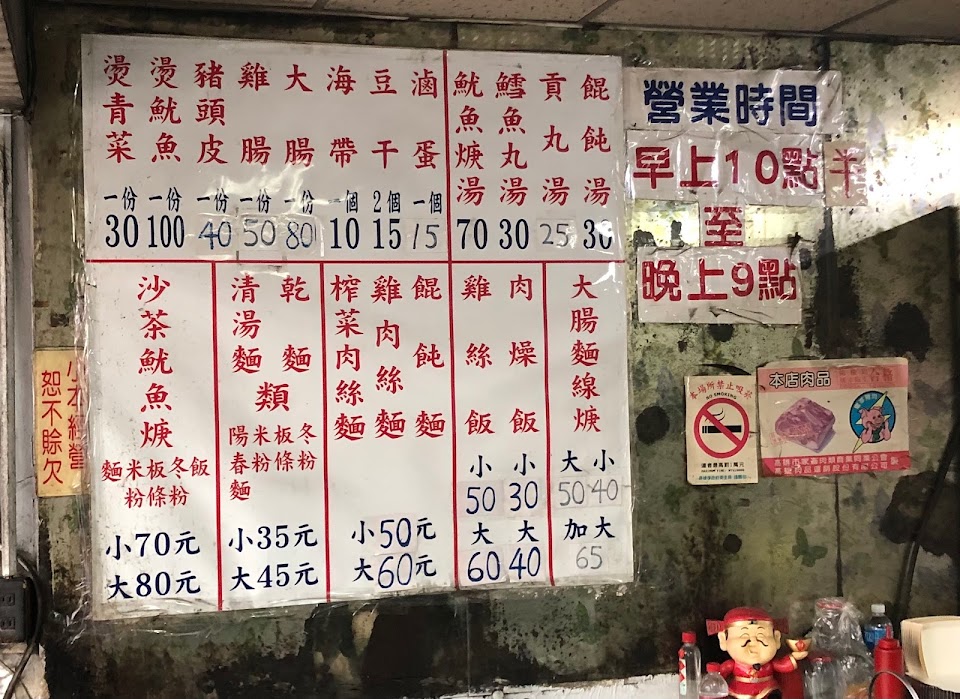 推該店的沙茶魷魚羹,不管是米粉還是麵都不錯吃,雞肉飯其實也不錯,只是太鹹了點,喜歡重口味的可以試試,另外也推他的燙魷魚,價格稍貴100一份,參考一下咯~