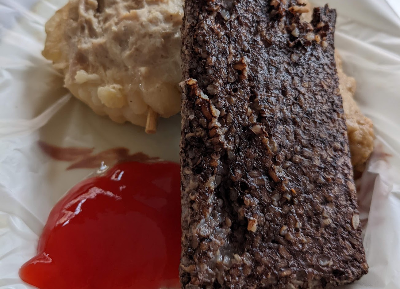 便宜又美味,香腸燒肉飯古早味,份量足; 關東煮柴魚湯頭好喝,點了一隻玉米超大隻,好吃!