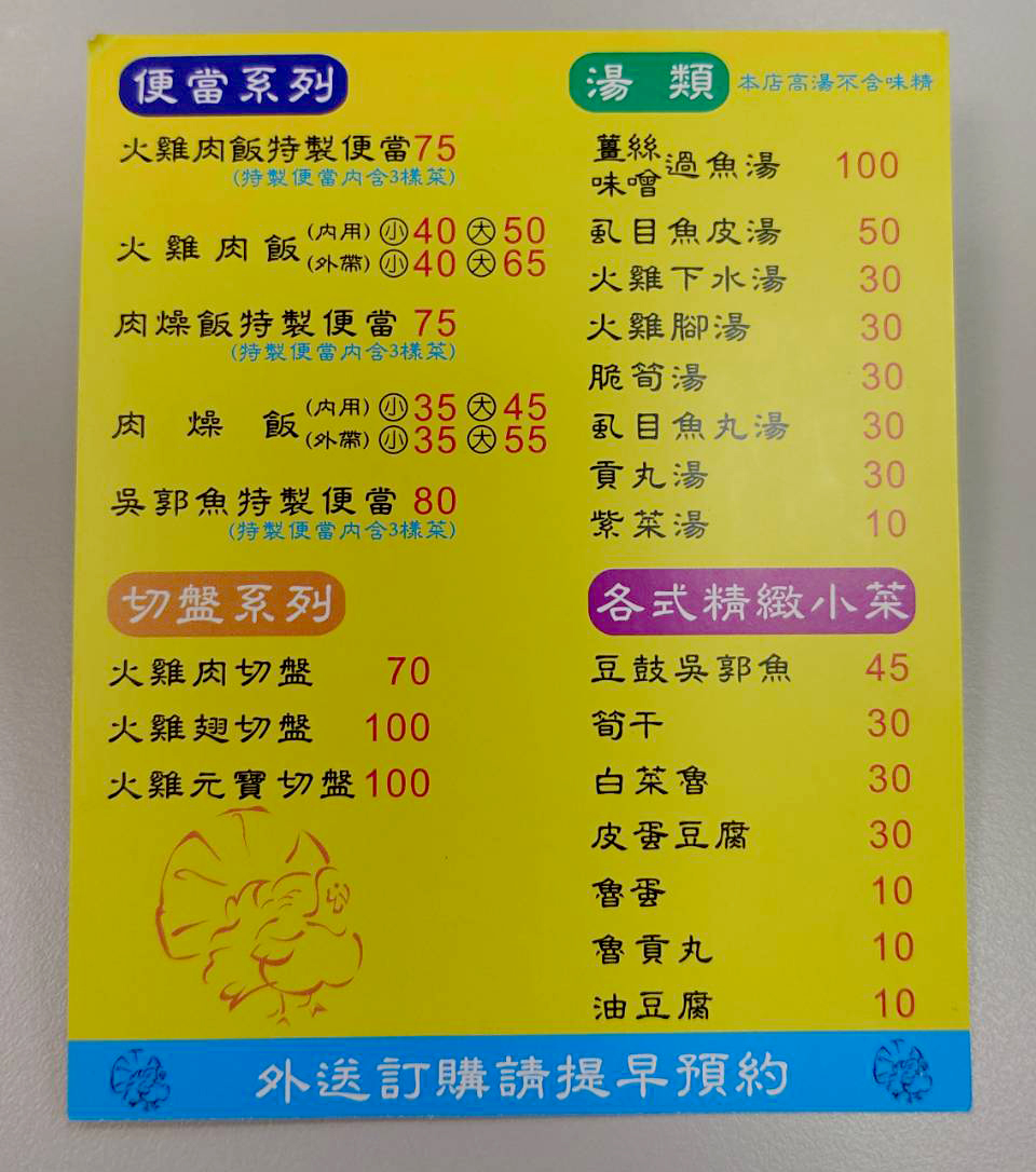 火雞肉便當很便宜也很好吃 是很多人下班的時候喜歡吃的店 還有虱目魚皮湯也超好喝的