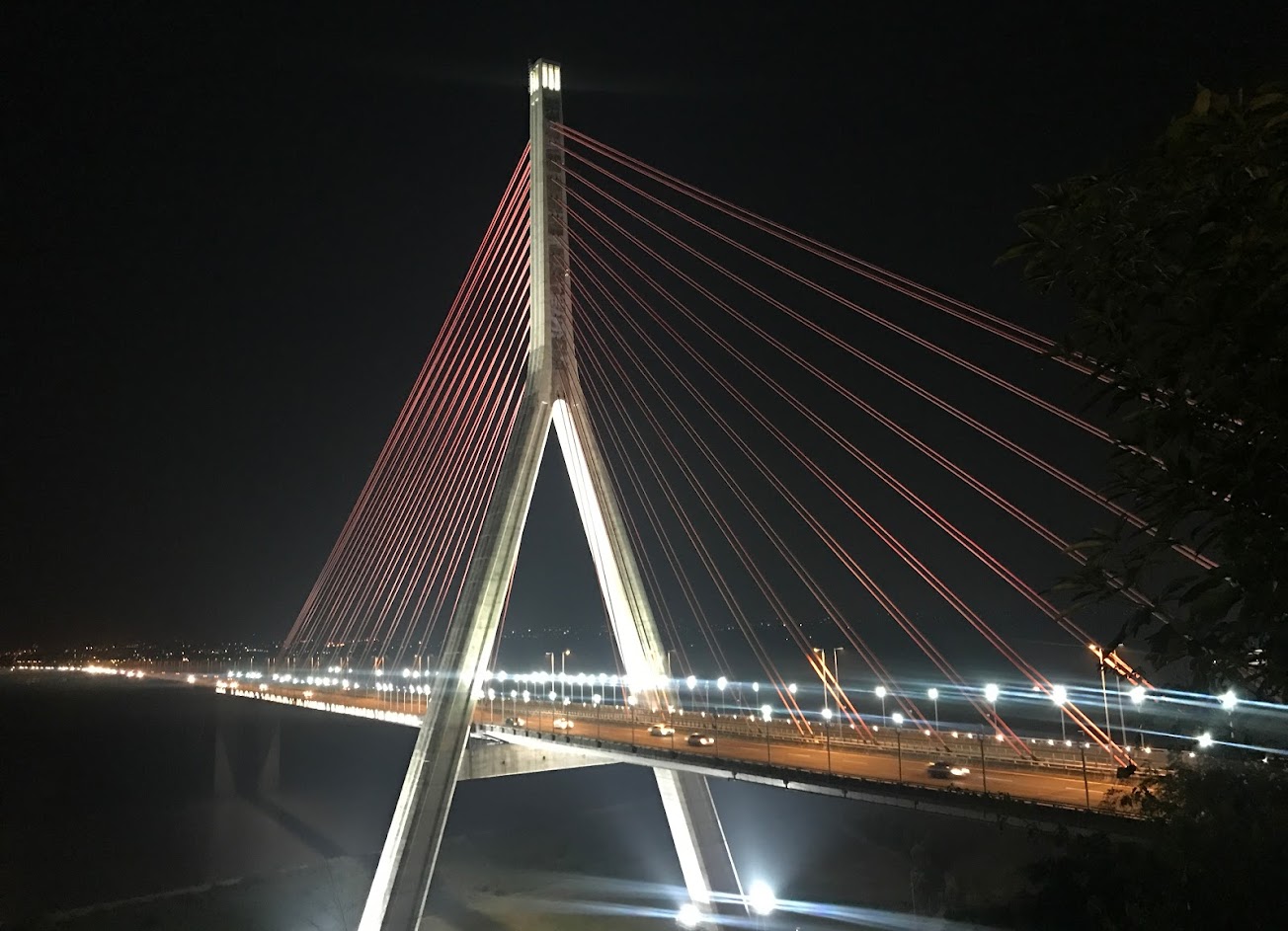 夜晚的斜張橋真的很美,看著國道的車子來來往往,心情很放鬆