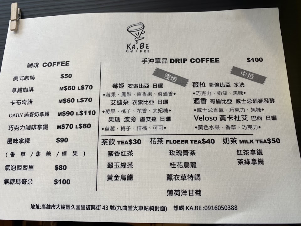 2024最新在地推薦餐廳的菜單_KA.BE COFFEE 自家烘豆、手沖咖啡、茶飲的菜單、圖片