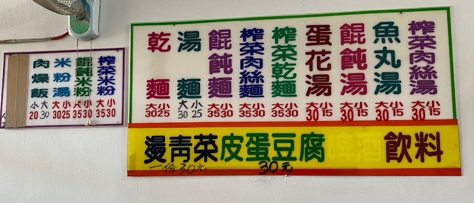 大肉燥飯 燙青菜 皮蛋豆腐 滷味 湯麵 燙青菜 小菜 大麻醬麵 大乾麵加滷菜