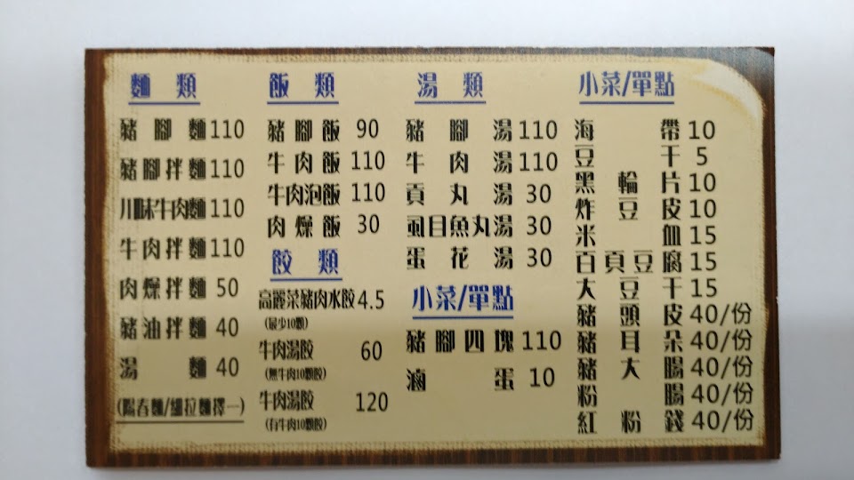 2024最新在地推薦餐廳的菜單_岡山公園豬腳麵牛肉麵(大社店)的菜單、圖片