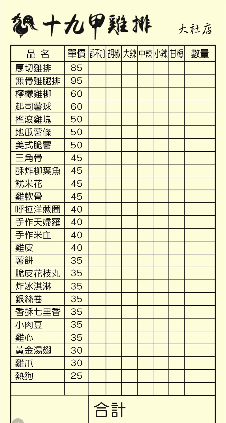 2024最新在地推薦餐廳的菜單_十九甲雞排-大社店的菜單、圖片
