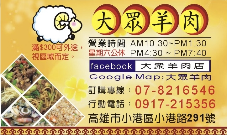 2024最新在地推薦餐廳的菜單_大眾羊肉的菜單、圖片
