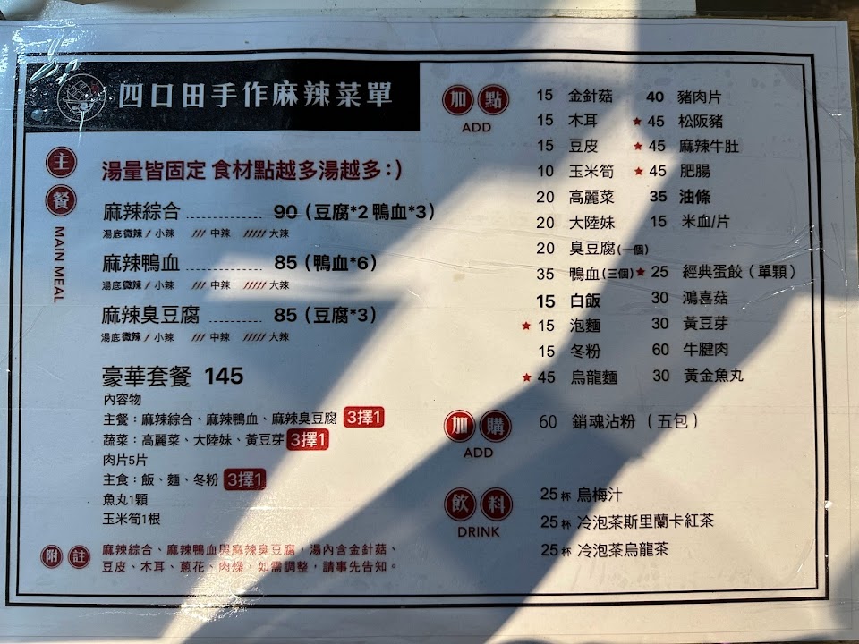 2024最新在地推薦餐廳的菜單_四口田手作麻辣專門 小港店的菜單、圖片