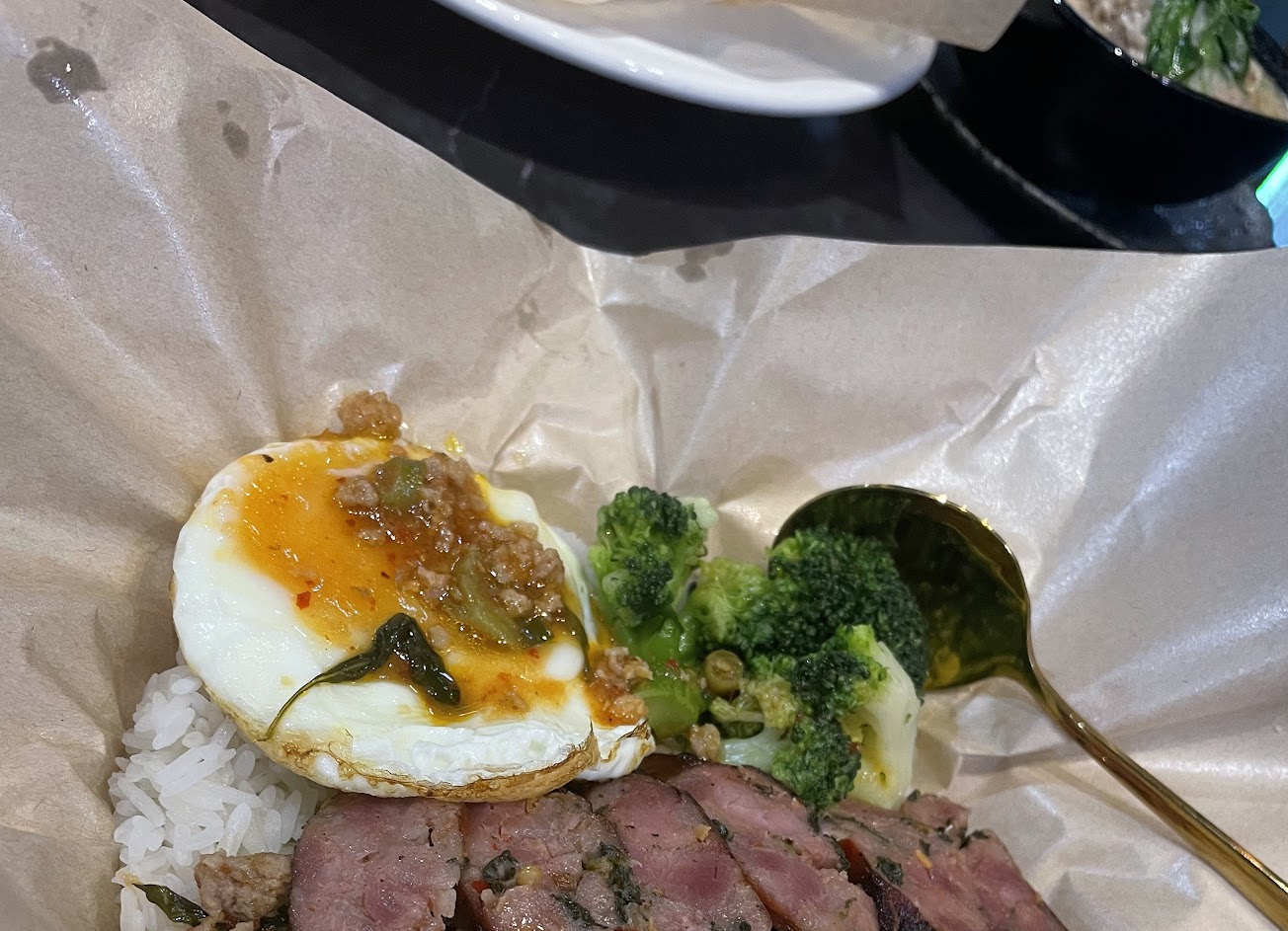 銷魂打拋起司蛋蓋飯超級好吃 而且一碗就吃得飽 泰奶也非常好喝