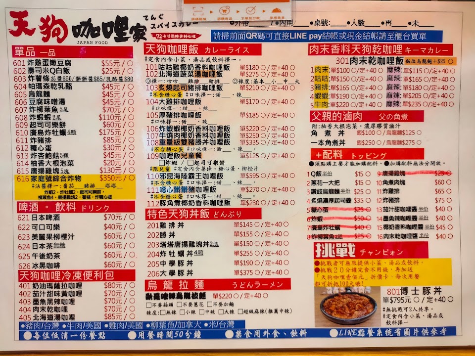 2024最新在地推薦餐廳的菜單_天狗咖哩家的菜單、圖片