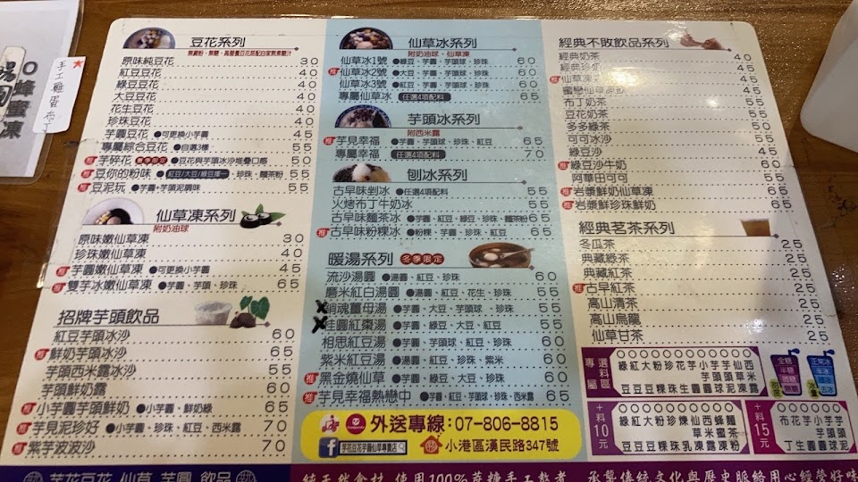 2024最新在地推薦餐廳的菜單_芋花-豆花仙草芋圓飲品專賣店的菜單、圖片