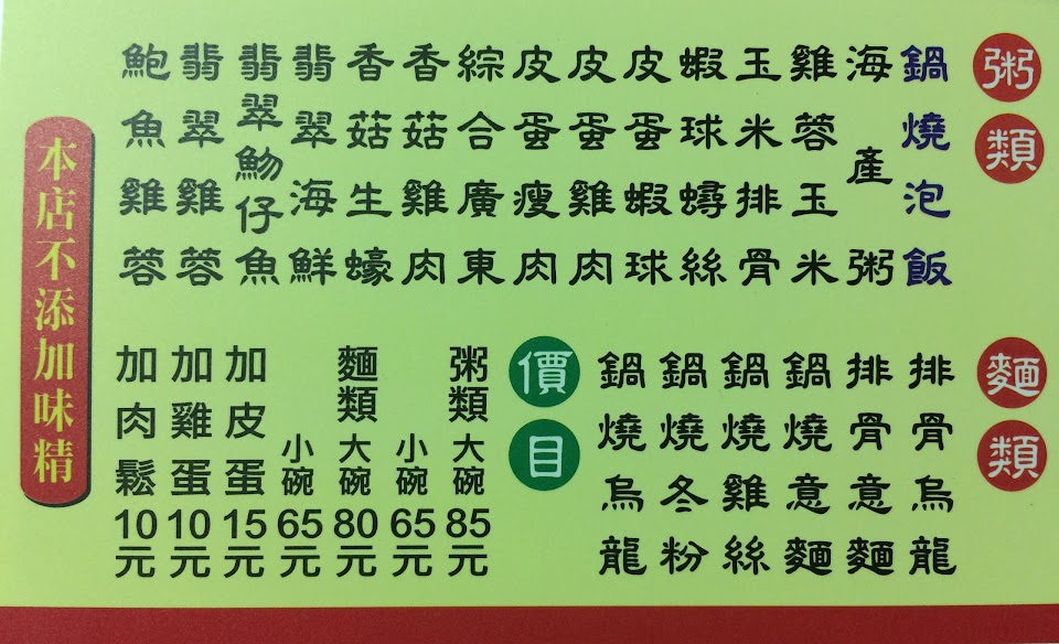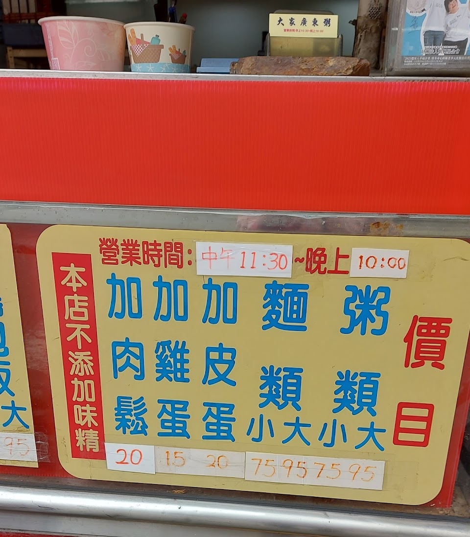 2024最新在地推薦餐廳的菜單_大眾廣東粥的菜單、圖片