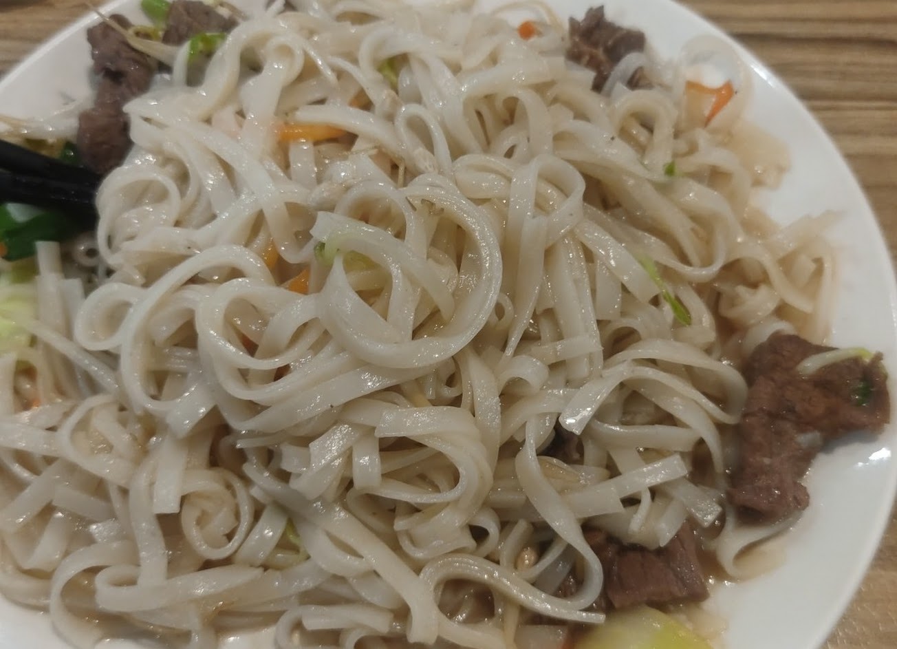 炒豬肉河粉超乾又沒味道,一點豆芽菜一點洋蔥一點肉,然後一堆超難吃的乾河粉,這個價位真的很差勁……