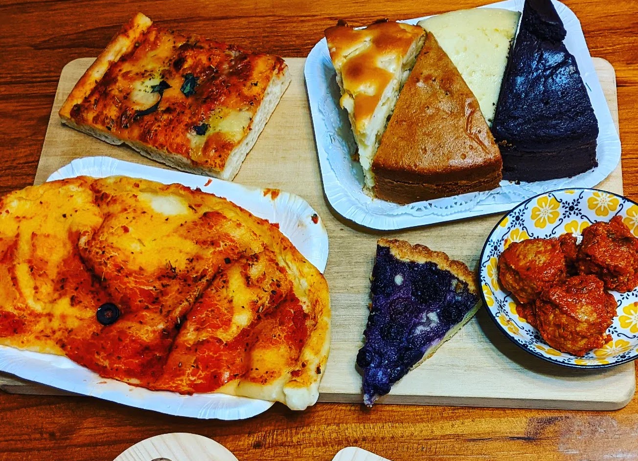 位置在市場附近的店面,整齊乾淨東西擺放在櫥窗內,琳瑯滿目感覺很可口, 買了四種口味的披薩,我倒覺得這個比較像麵包, 和一般吃的披薩不太一樣, 料比較簡單,相對也比較少, 但是價錢便宜40元, 也是算挺好的了。 蛋糕我覺得吃起來粉粉,乾了一點, 一片也是60塊, 家常口味偏甜, 簡單不驚豔。