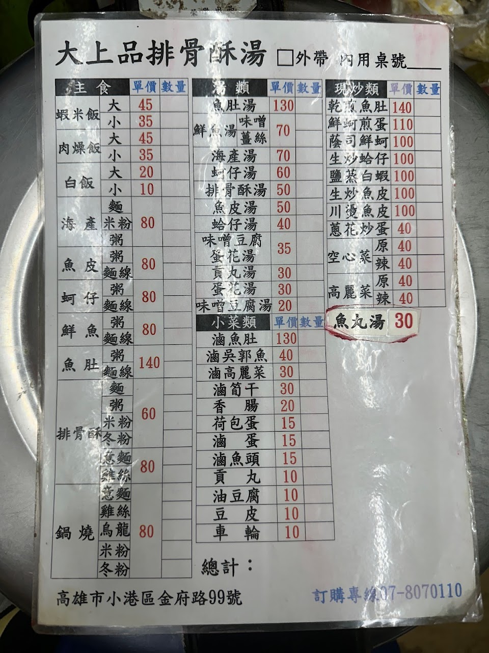 2024最新在地推薦餐廳的菜單_大上品蝦米飯排骨酥湯的菜單、圖片