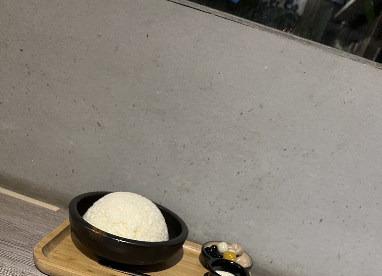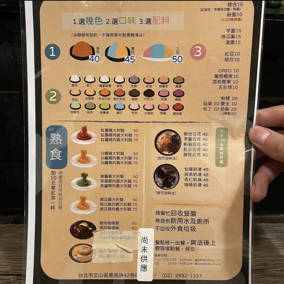 冰品:套餐只能選單色,單點可以選雙色,店家很細心,有附醬汁可以增加味道,吃到最後發現裡面還有應該是店家自製的布丁(偏硬),有讓人驚豔的感覺,而且附件芋丸及珍竹珠,都很好吃。