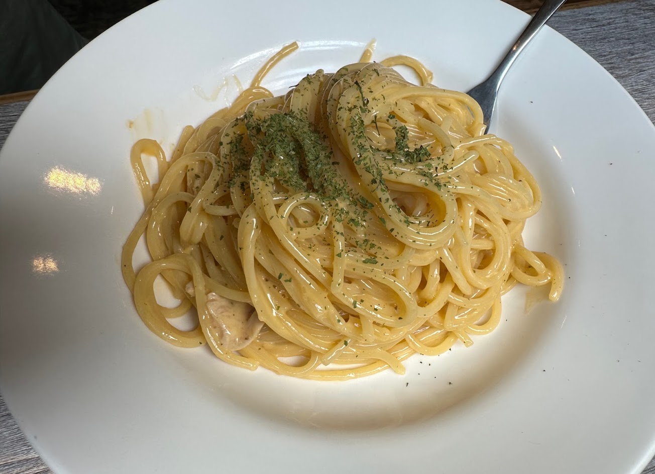 白醬義大利麵很好吃 不是很稠的 非常夠味