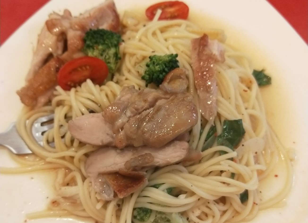蒜香雞排義大利麵,我覺得不錯,這是有辣的