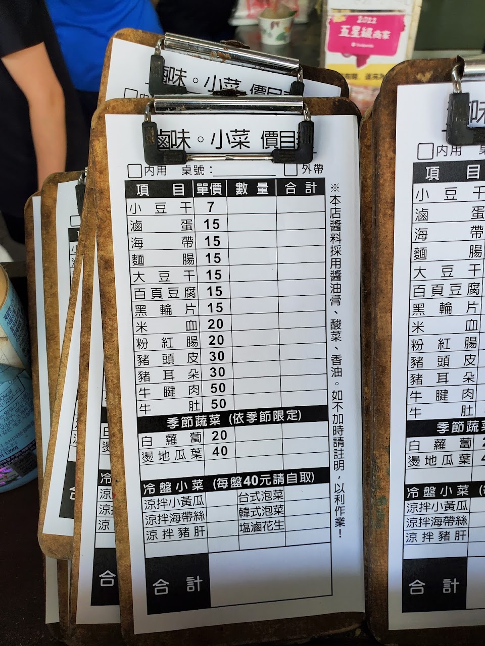 滷味也好吃、價格公道。通常,我都請老闆在滷汁裡燙過加蔥就好。外帶幾次給朋友吃,她們也説?