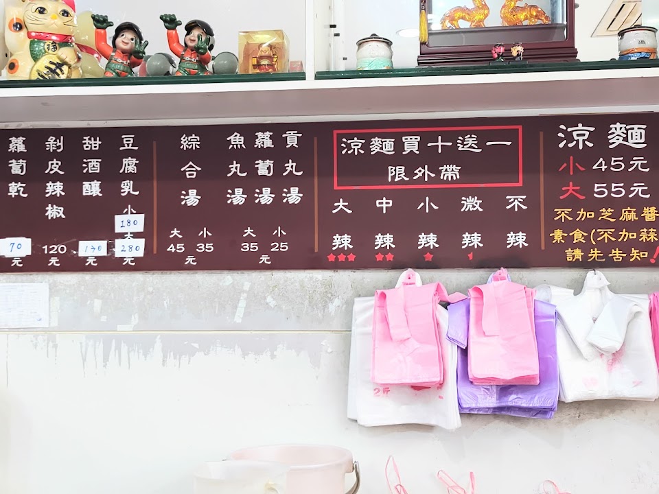 販售涼麵、湯品、剝皮辣椒、蘿蔔乾等。