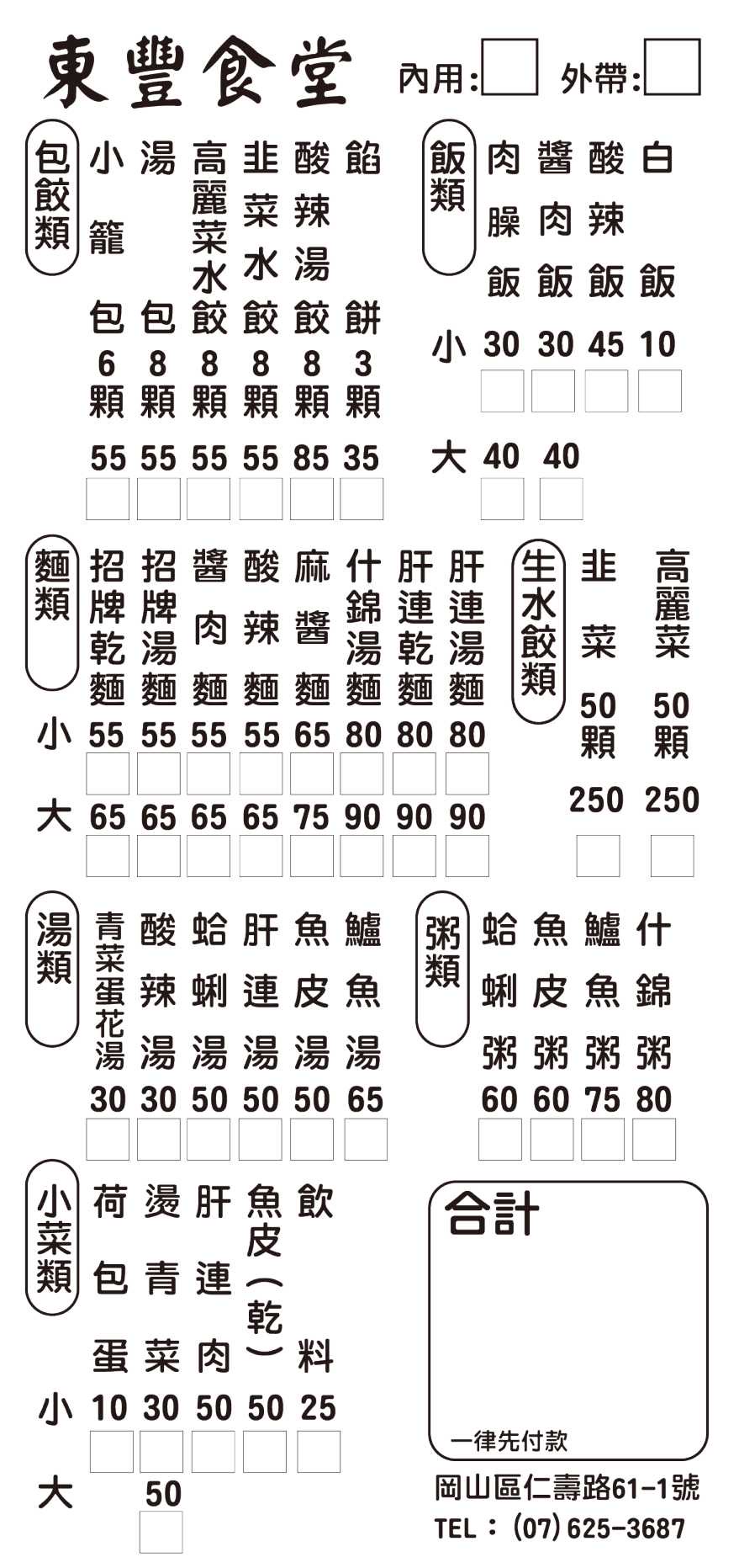 2024最新在地推薦餐廳的菜單_東豐食堂(岡山店)的菜單、圖片