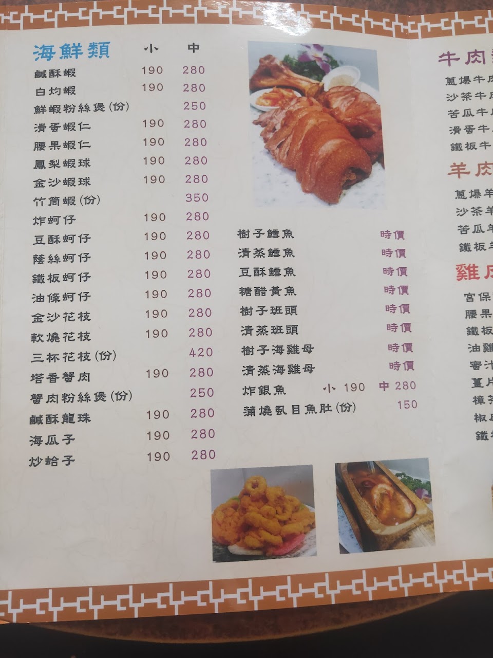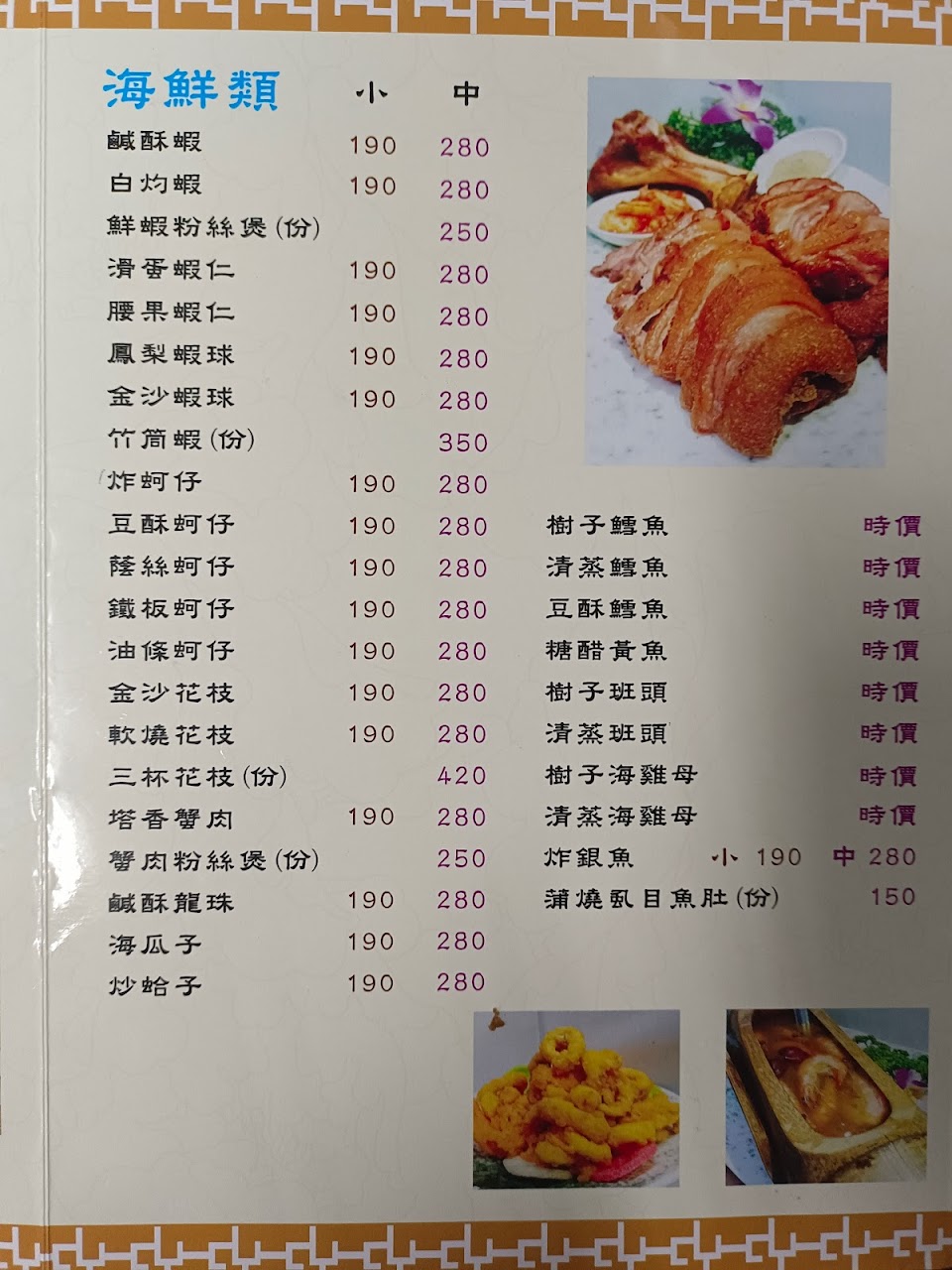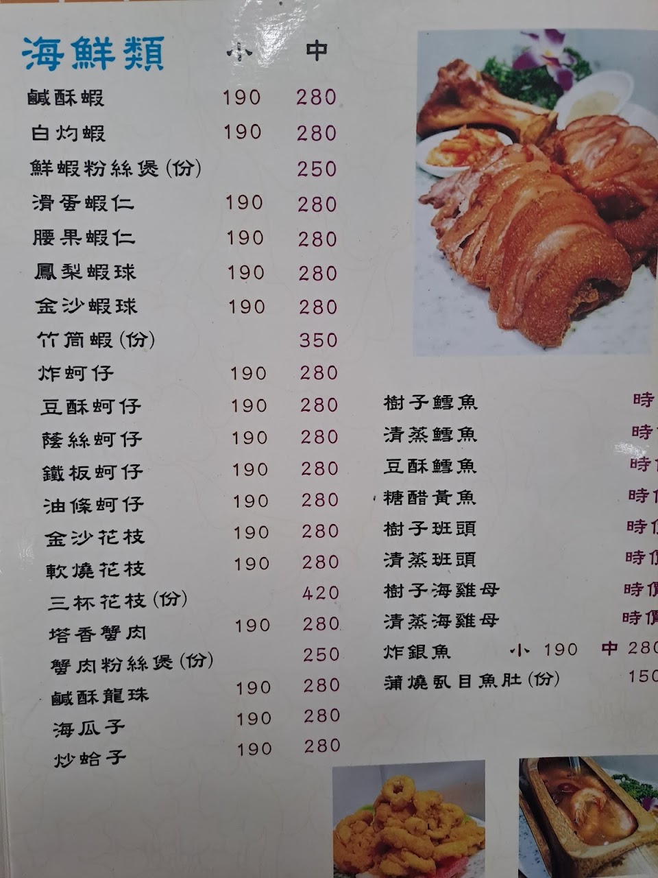 酥炸鮮蚵 椒麻雞 椒鹽豬腳 糖醋魚