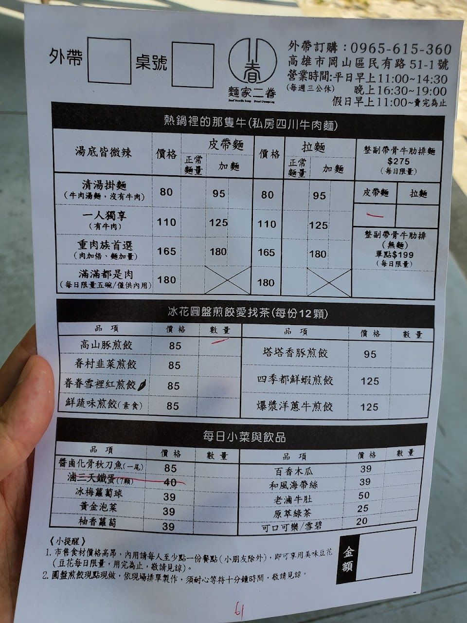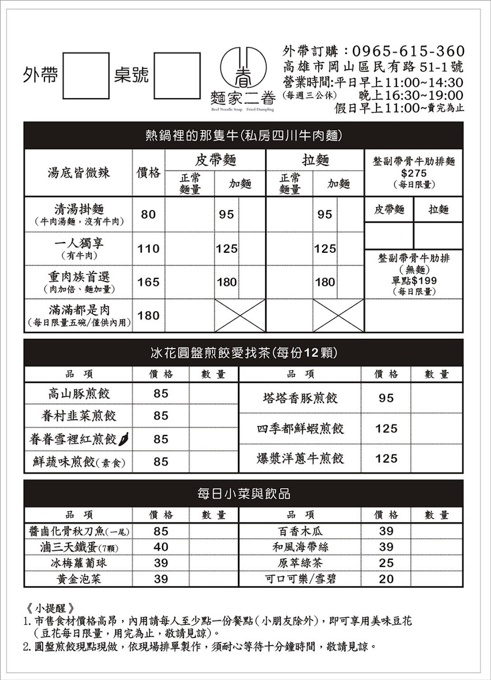 2024最新在地推薦餐廳的菜單_麵家二眷-岡山店(無訂位)的菜單、圖片