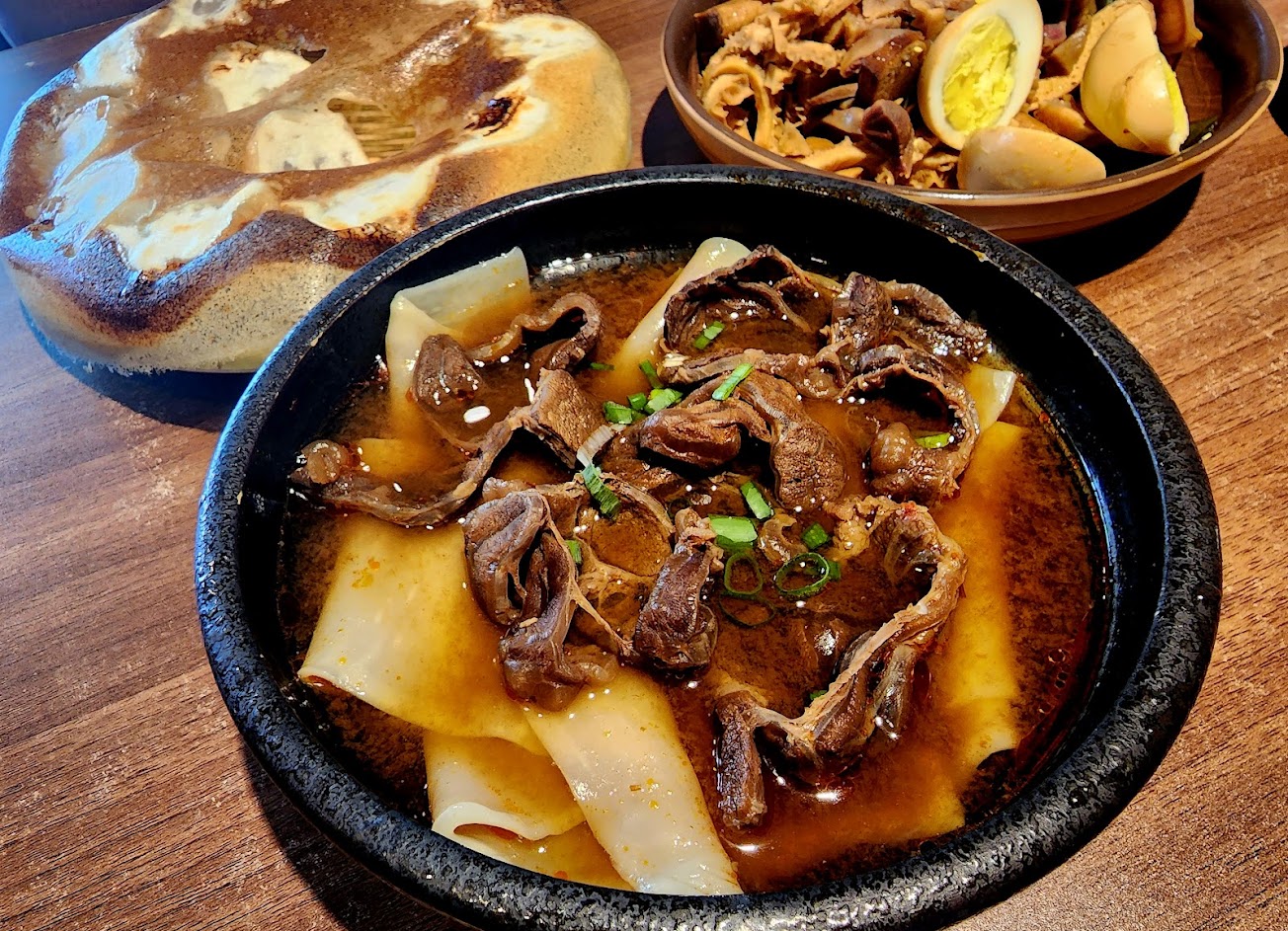 新的店面裝潢注入了老眷村的味道 清爽的小菜搭配地道的麵條,拉麵的咬勁和皮帶麵口的飽足感各有不同風味,與多種餃子口味拼成讓人滿意的組合,滷味也是花了時間滷出的軟嫩可口,還有免費提供的自盛豆花,若要說可以改善的地方,牛肉片的口感有點偏硬或許能夠調整一下。