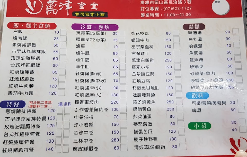 2024最新在地推薦餐廳的菜單_萬津食堂的菜單、圖片