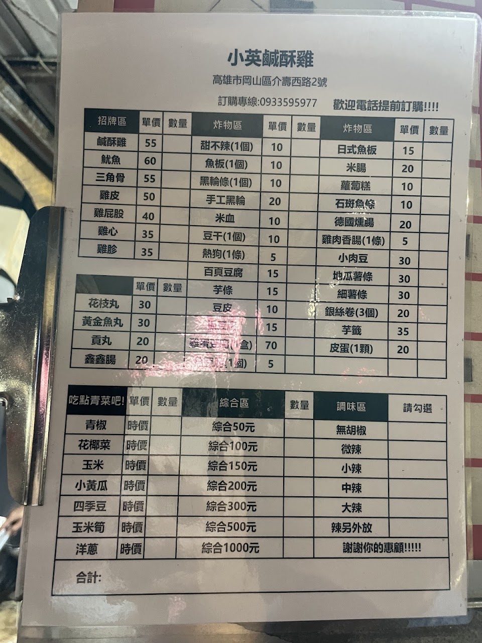 2024最新在地推薦餐廳的菜單_小英鹹酥雞的菜單、圖片
