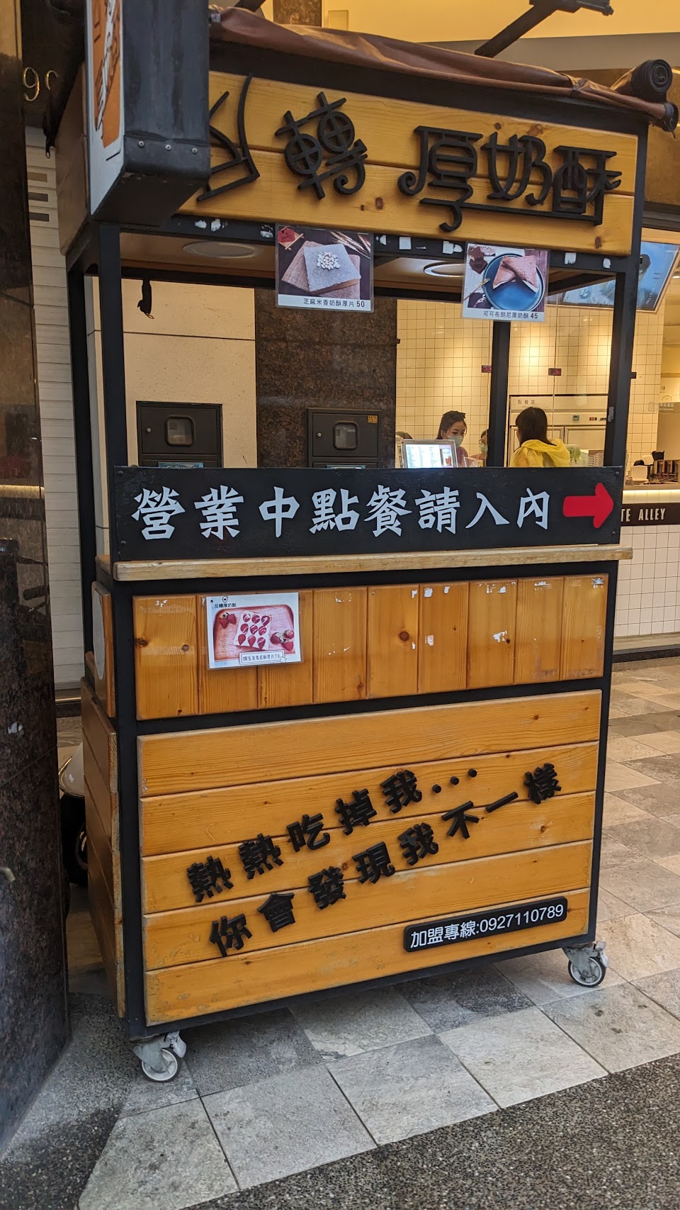 價格上 目前奶酥的是50元 個人覺得不算貴 也不算便宜 另外還有其他口味跟餐點可以選擇 而且因為是直接到白巷子飲料店的櫃檯點餐 所以也可以順便買它的飲料來解渴???酷的是這間店竟然有內用座位 而且有冷氣 真的讚?